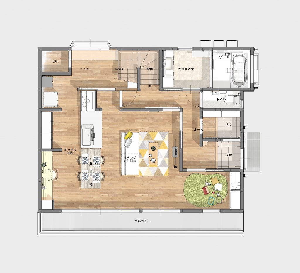 家事をしながらお子様の様子をみられる間取り。