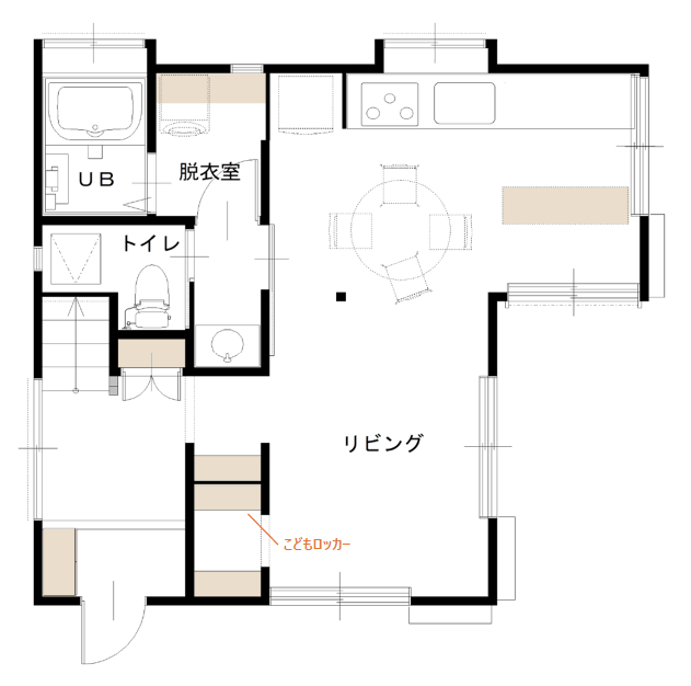 • こどもロッカーはリビングの一角に。必要なときすぐに出し入れできて、自分で物の管理をする様子を見守れます。