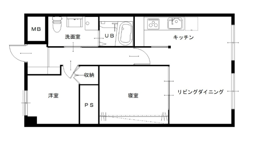 • LDKに入った時の景色。奥まで見通せるので視覚的に広く見えます。