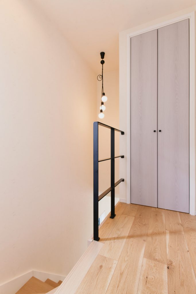 戸建てで多い相談が、寒さの心配。外壁には、断熱性が高い金属サイディングを使用。外の気温に影響を受けにくいので、1年を通して快適に過ごすことができます。また、床材には無垢のパイン材を使用しました。空気穴が多い素材で、空気の層が天然の断熱になるためひんやりとした触感がなく、足裏の温度を逃しません。また柔らかい素材なので腰への負担も抑えることができます。