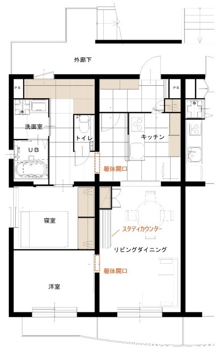2部屋をつなげるリノベーション