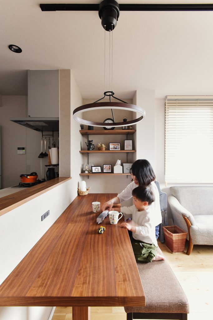 実は、キッチン以外は既存の配置からほとんど変えていないのですが、用途に合わせて部屋の広さやドアの位置を工夫するだけで動線が大きく改善されました。忙しい中でも幼い息子さんとの時間がたくさん取れるよう、毎日の家事の効率が上がる動線や収納計画と、成長を踏まえて少し先回りしたご提案を意識しました。