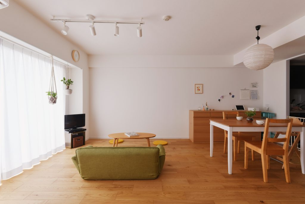 築21年、状態の良い中古マンションを購入され、奥様の育休中にリノベーションを行いました。リビングからつながるファミリークローゼットは、子どもも大人も使いやすくてうれしいアイデア。既存の間取りや設備を生かしながら、こだわりの内装も諦めない。コストバランスの取れたリノベーションになりました。