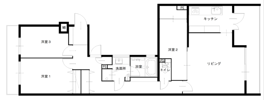 個室の数や大きさ、洗面所やキッチンといった水回りの位置は、既存の間取りを生かしており、収納も以前のものをそのまま使っている箇所が多くあります。