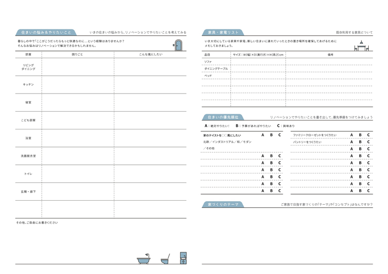 書き込むとリノベーションの優先順位や理想の暮らしが見えてくる。